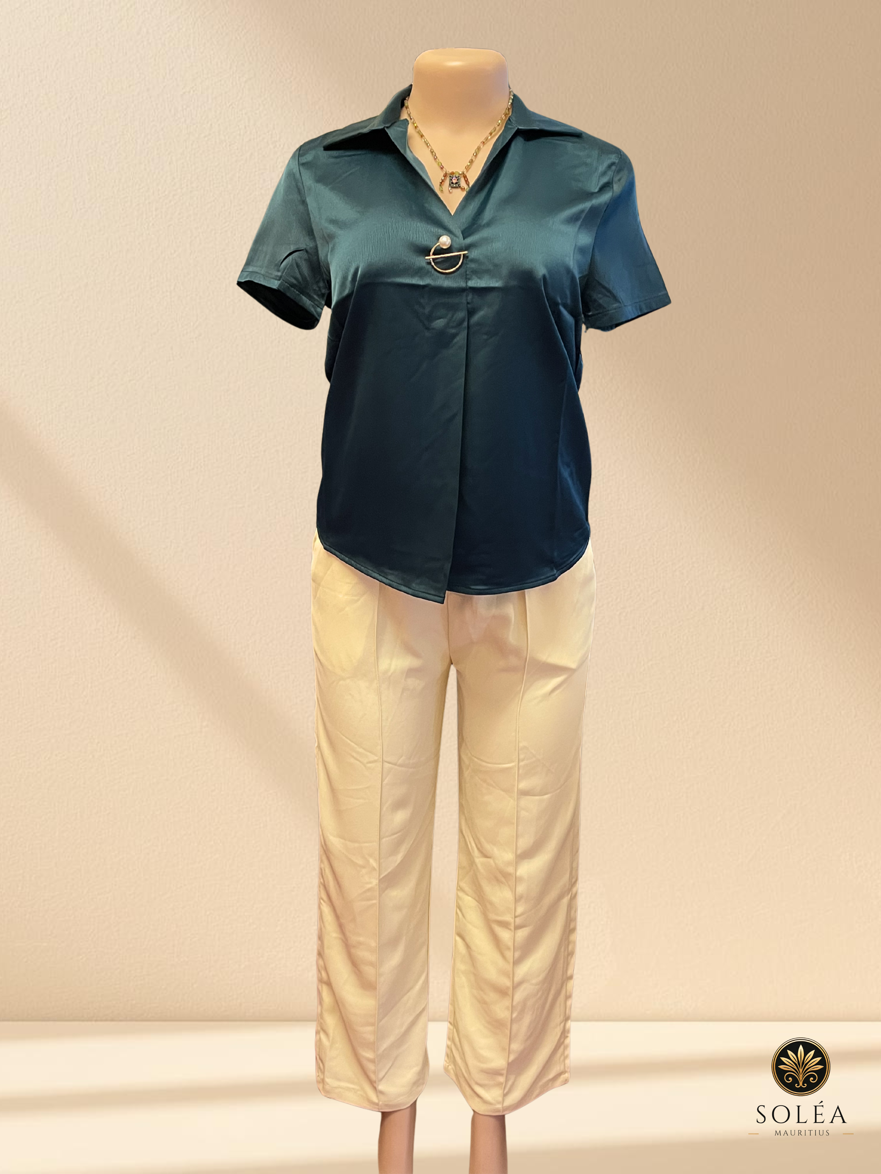 A fresh, vibrant emerald chemise that elevates your everyday wardrobe with a clean and polished look.